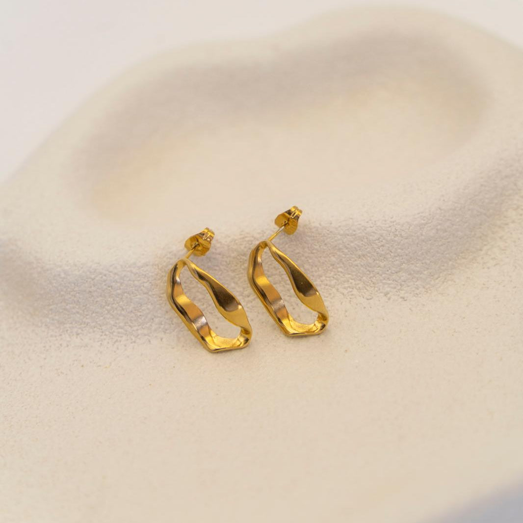 Modern and fluid, Nola feature a softly twisted silhouette that catches the light from every angle. Their sculptural form evokes movement and ease, bringing a touch of understated elegance to any look. Designed for everyday wear with a refined, artful edge.