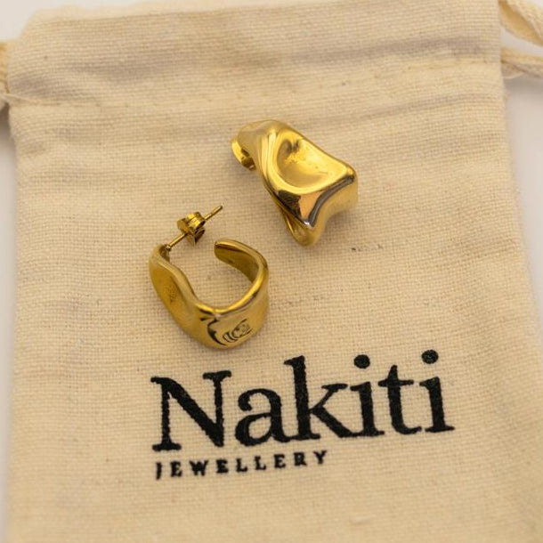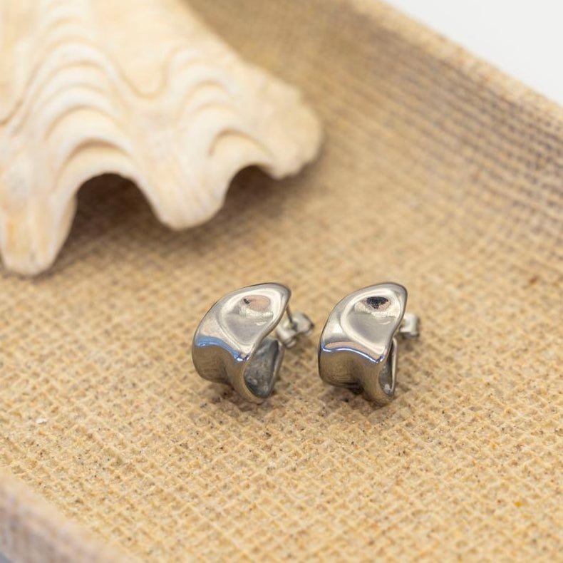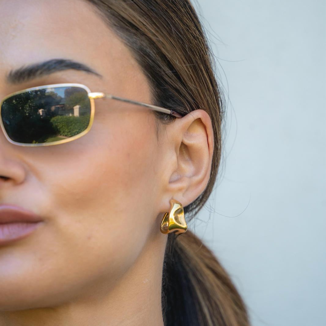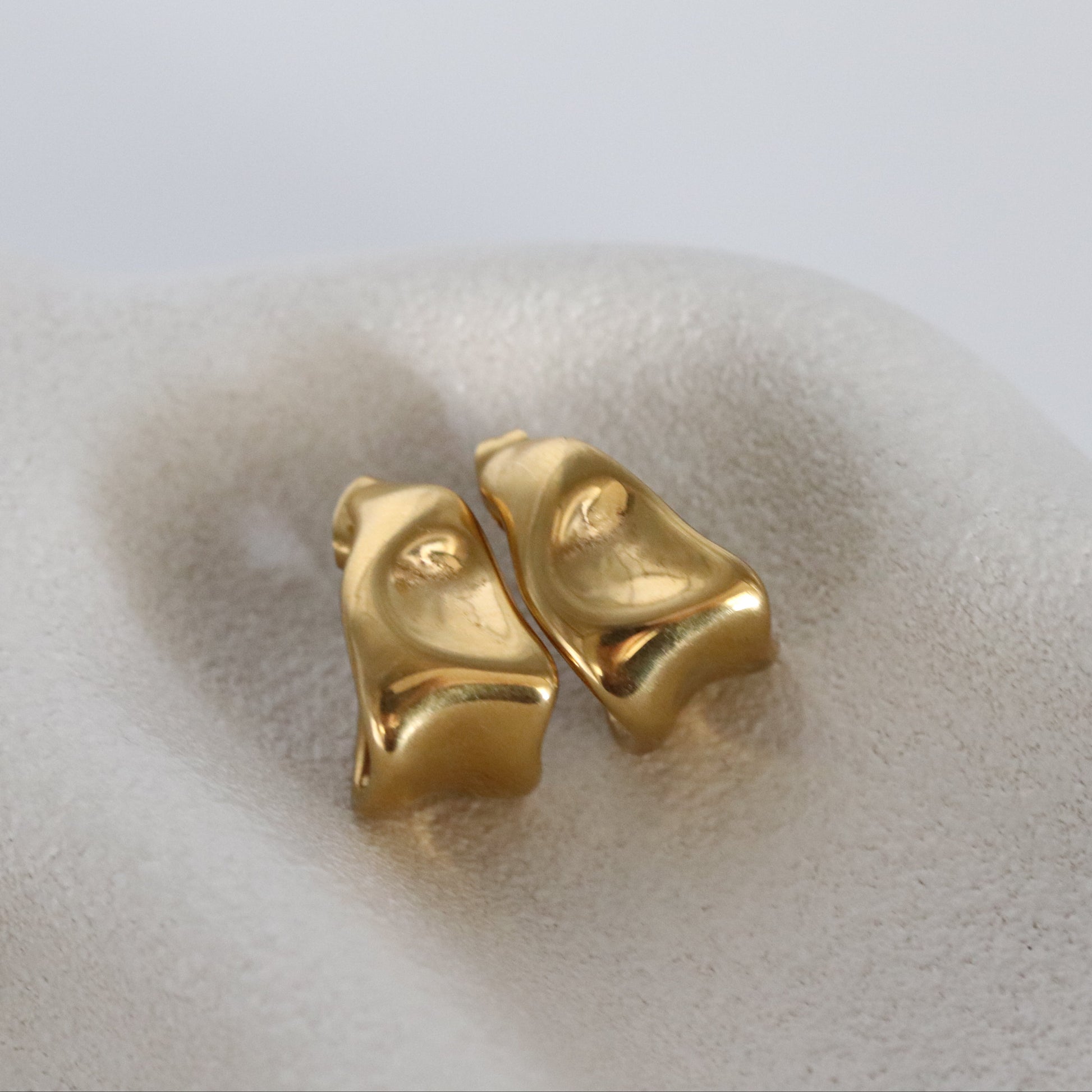Striking yet fluid, the Odessa earrings feature sculptural curves that flow like liquid metal, a perfect balance of boldness and grace. Their undulating form catches the light beautifully, creating a look that feels both modern and timeless.